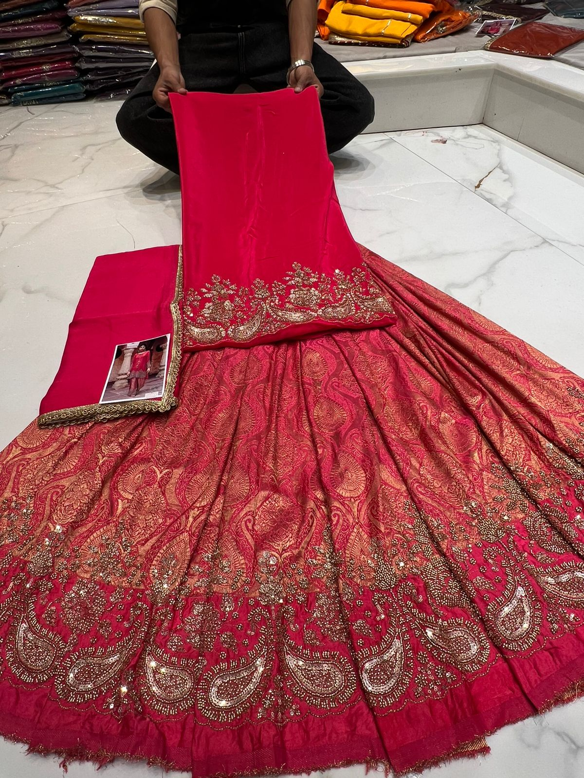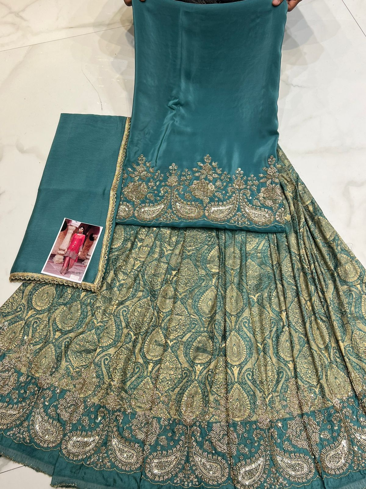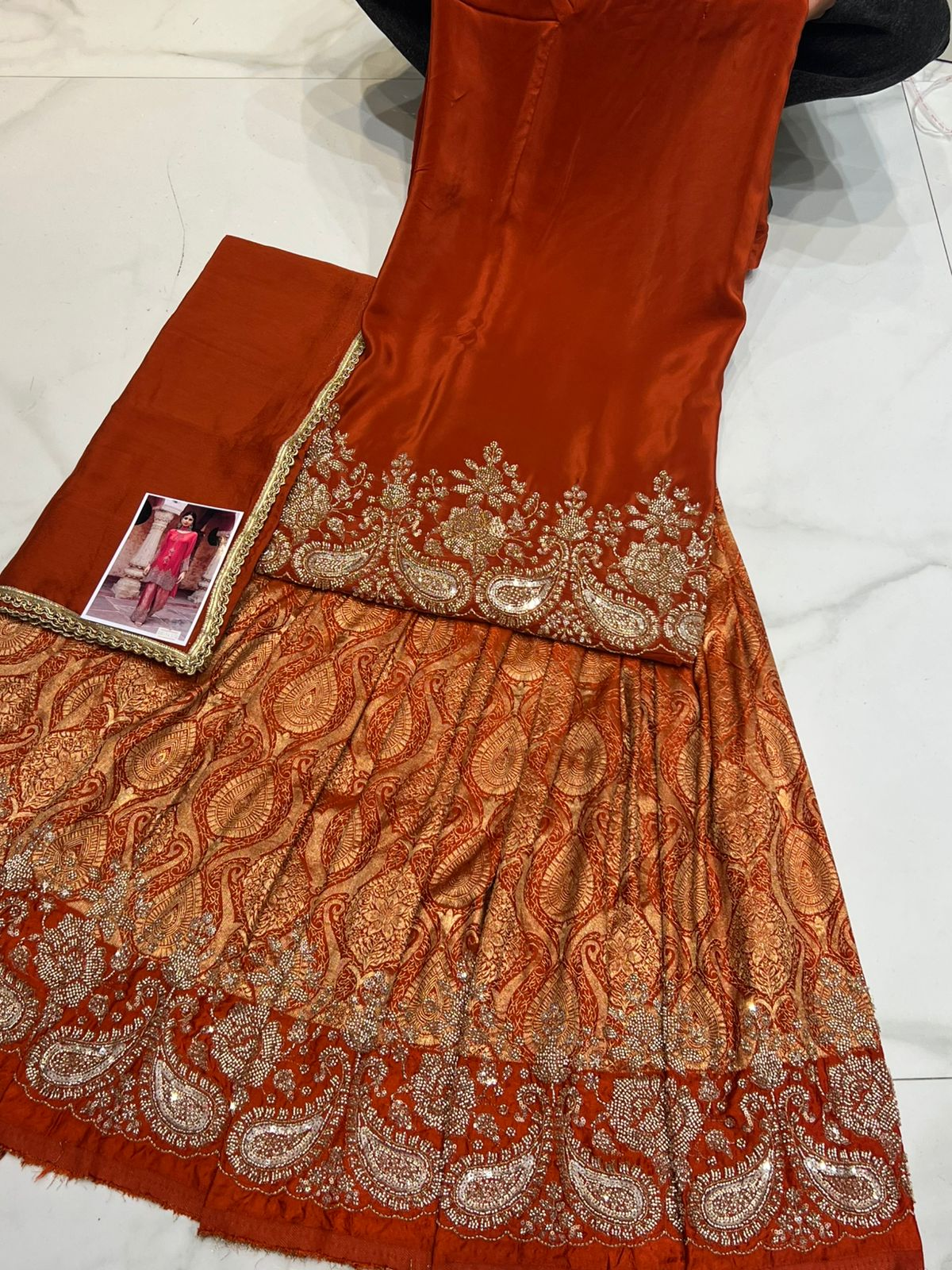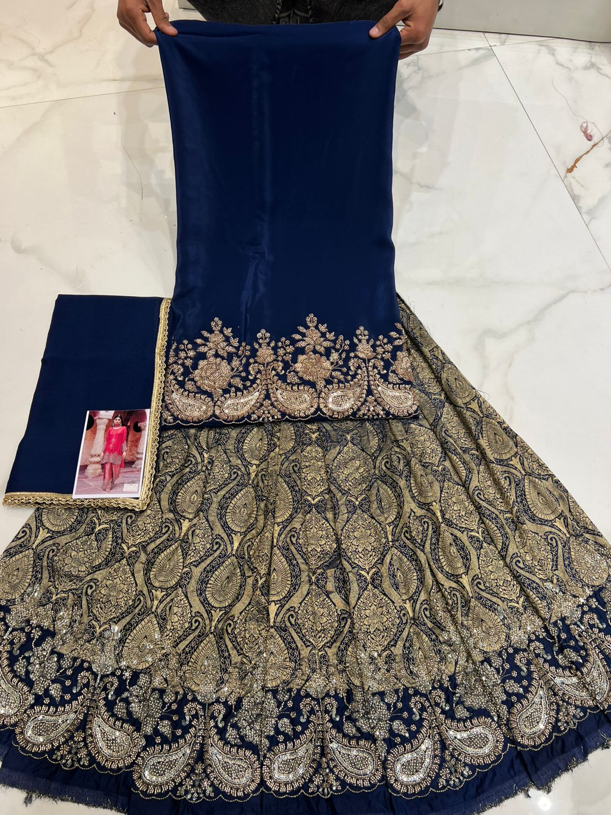 Bottom: Broquade print with handowork embroidery