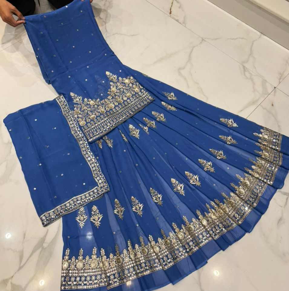 Top: Viscose Georgette base with front and back embroidery
